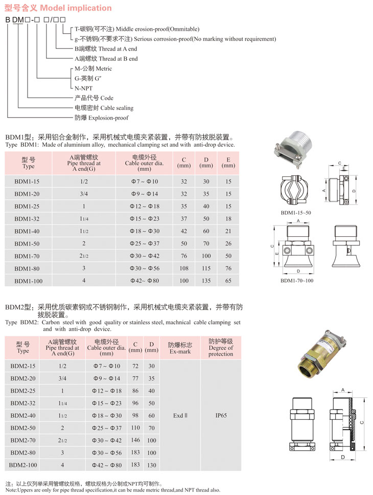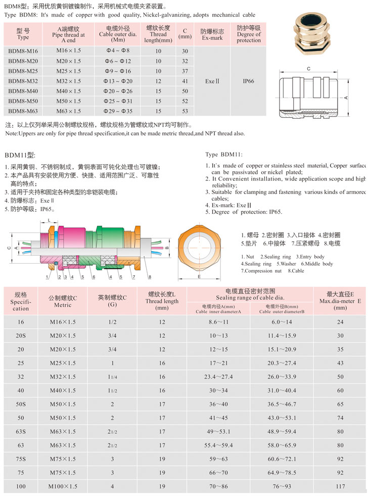 BDM口系列防爆電纜夾緊密封接頭