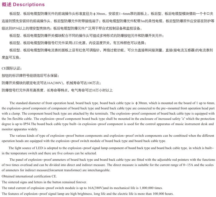 板后型、板后電纜型、防爆防腐按鈕(開關(guān))、信號燈元件