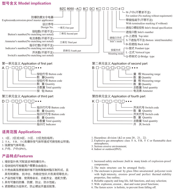 BZA8050-K系列防爆防腐主令控制器(照明開關(guān))