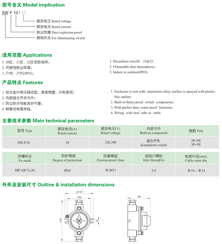 BZM-F10系列粉塵防爆照明開(kāi)關(guān)