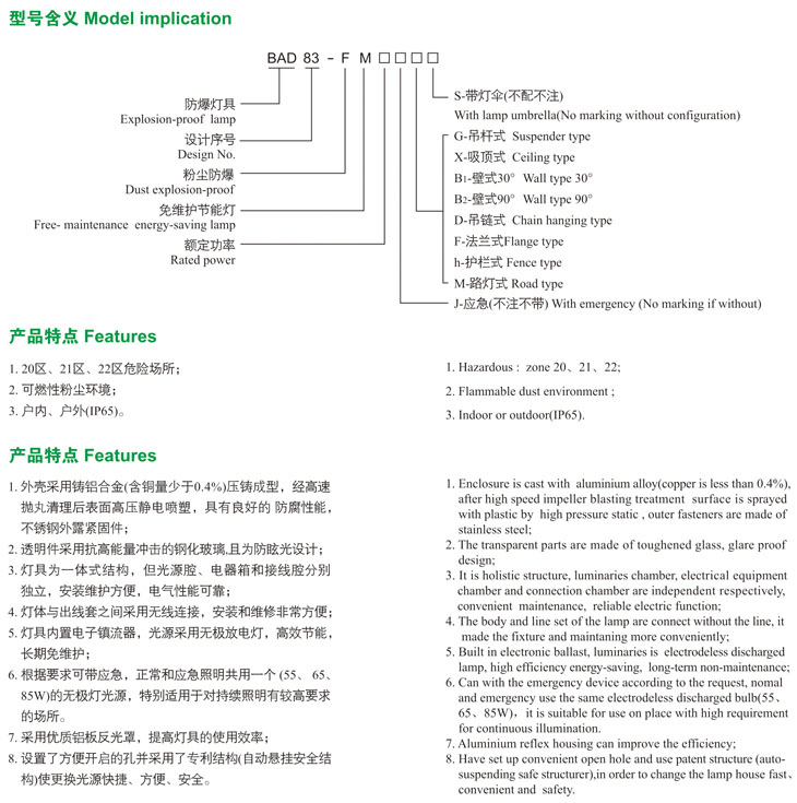 BAD83-FM系列粉塵防爆燈(免維護(hù)節(jié)能燈)