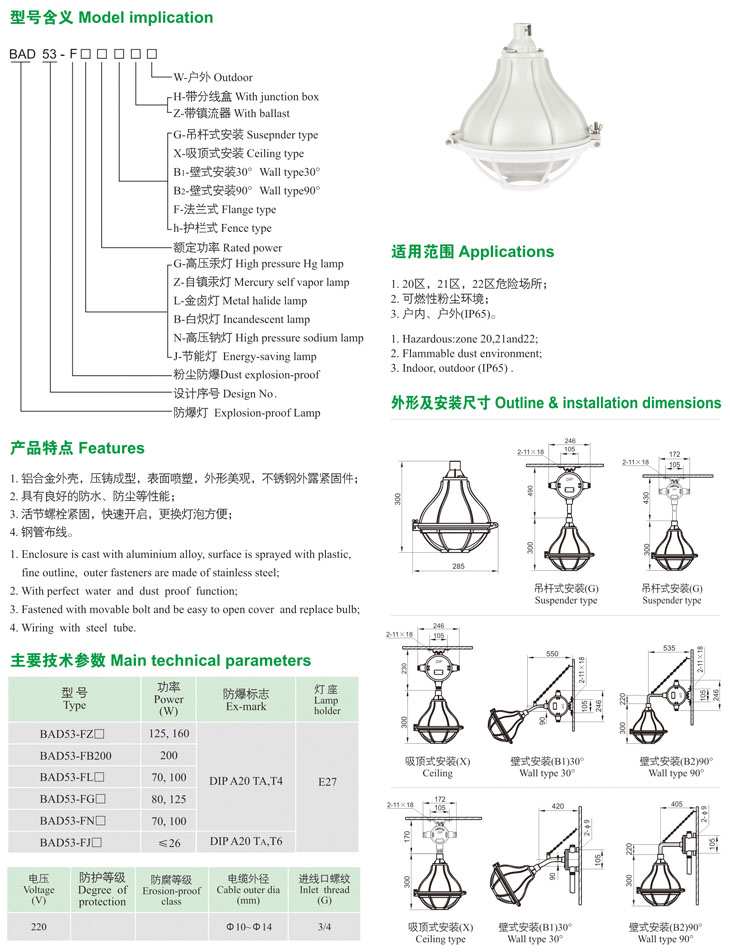 粉塵防爆燈(一體式)BAD81-DIP-400
