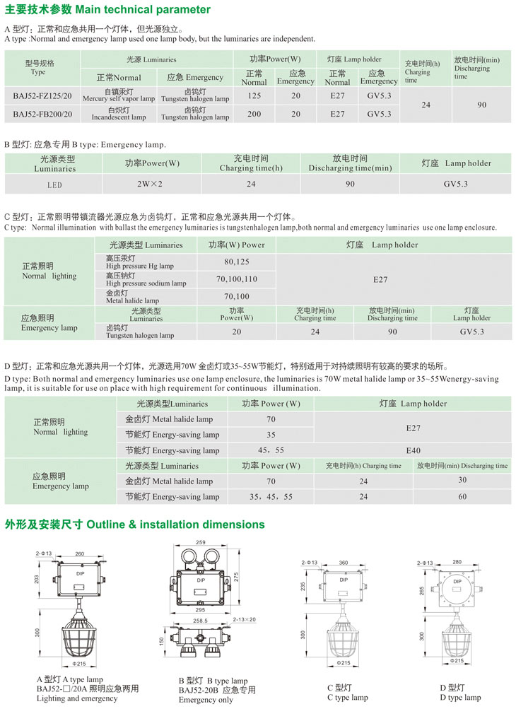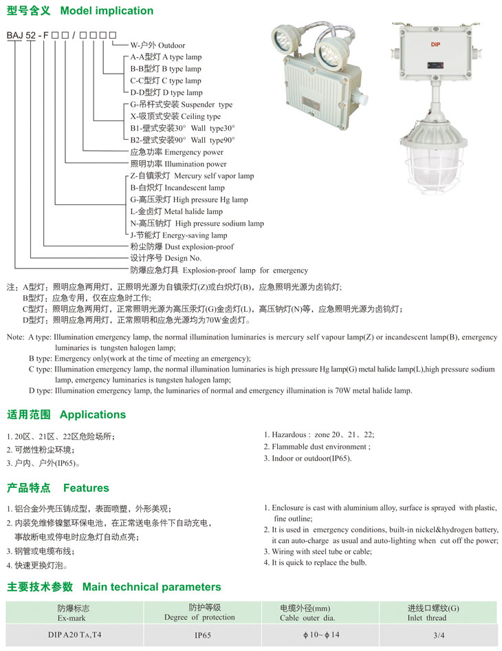 BAJ52-F系列粉塵防爆應(yīng)急燈
