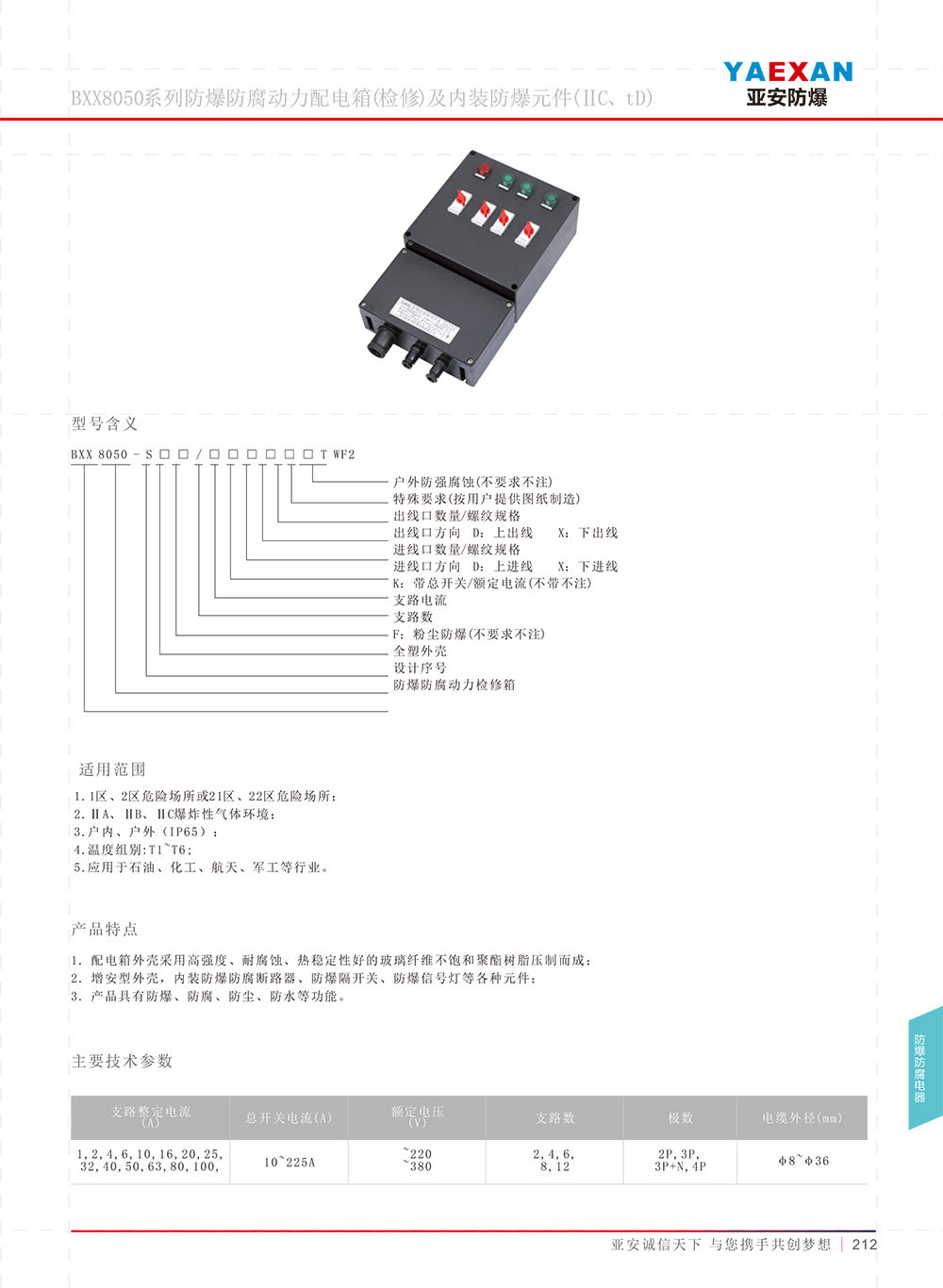 BXX8050系列防爆防腐電源插座箱(柜) (IIC、tD)